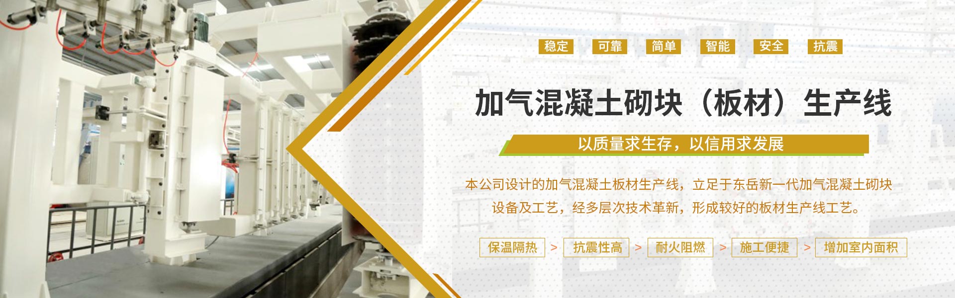 公司主產(chǎn)品有蒸壓加氣混凝土砌塊生產(chǎn)線(xiàn)、蒸壓加氣混凝土板材生產(chǎn)線(xiàn)、蒸壓灰砂磚生產(chǎn)線(xiàn)、大中型砌塊成型機(jī)、蒸壓釜、鍋爐等壓力容器,加氣混凝土砌塊·板材·灰砂磚等建材制品、鋼構(gòu)保溫復(fù)合板、彩鋼瓦、集成房屋等。