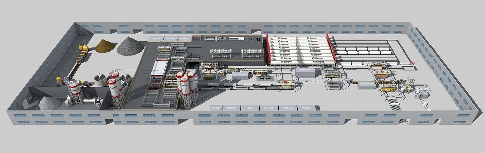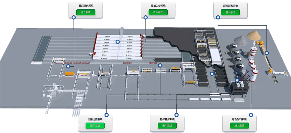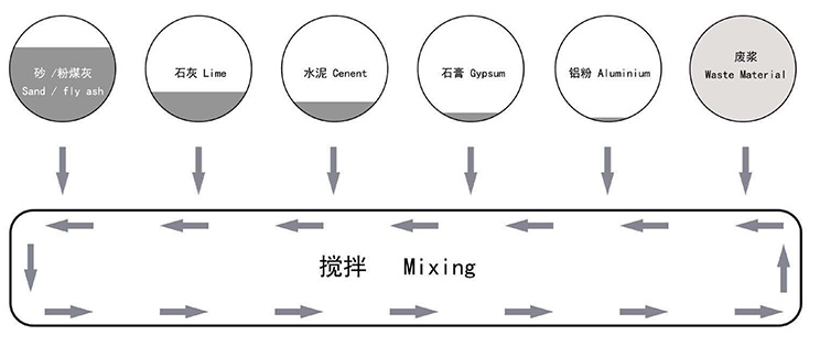料漿、膠結(jié)料、石膏和鋁粉都分別通過相應(yīng)自動計量稱計量,后在攪拌機內(nèi)高速攪拌,澆注到模箱后進(jìn)行氣泡梳理。整個體系由 PLC 系統(tǒng)進(jìn)行自動控制,保證工序的精確和高效。